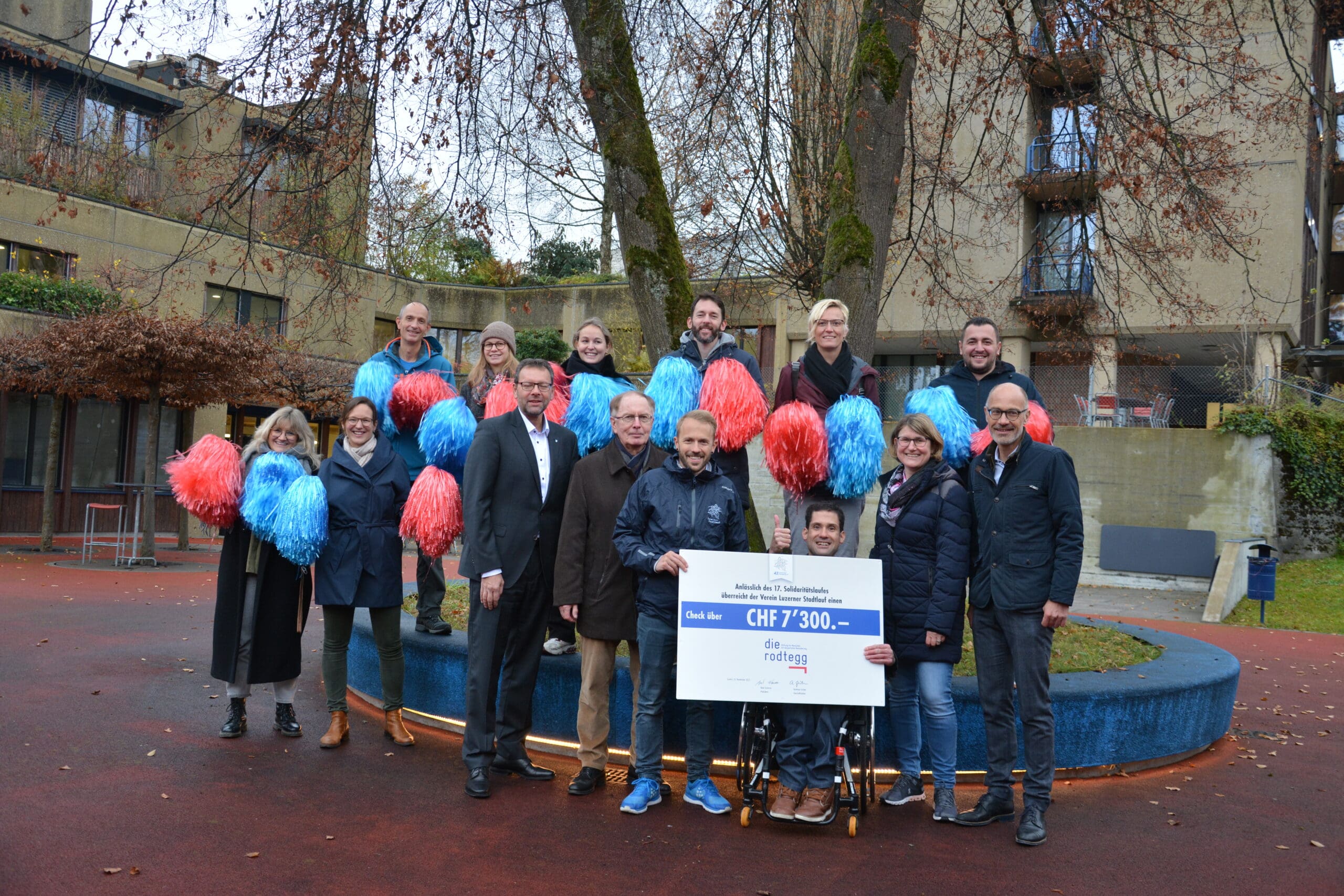 Der Solidaritätslauf des Luzerner Stadtlaufs fand 2021 zugunsten der Stiftung Rodtegg statt. Unterstützt durch die Rodtegg Cheerleader durften wir von Andreas Grüter, Geschäftsführer Luzerner Stadtlauf und Vorstandsmitglied, Ueli Kaltenrieder einen Check in der Höhe von 7’300 Franken entgegennehmen. Der Betrag kommt dem Spenden-Projekt „rollstuhltransportfähiger E-Kleinwagen” zugute. Für das Projekt sammeln wir weiterhin im Rahmen unseres 40-järhigen Jubiläums.